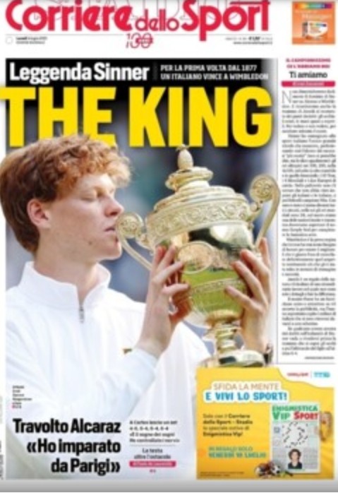 1- لاغازيتا ديلو سبورت: اسطورة ويمبلدون الجديدة، اول ايطالي يفوز باللقب