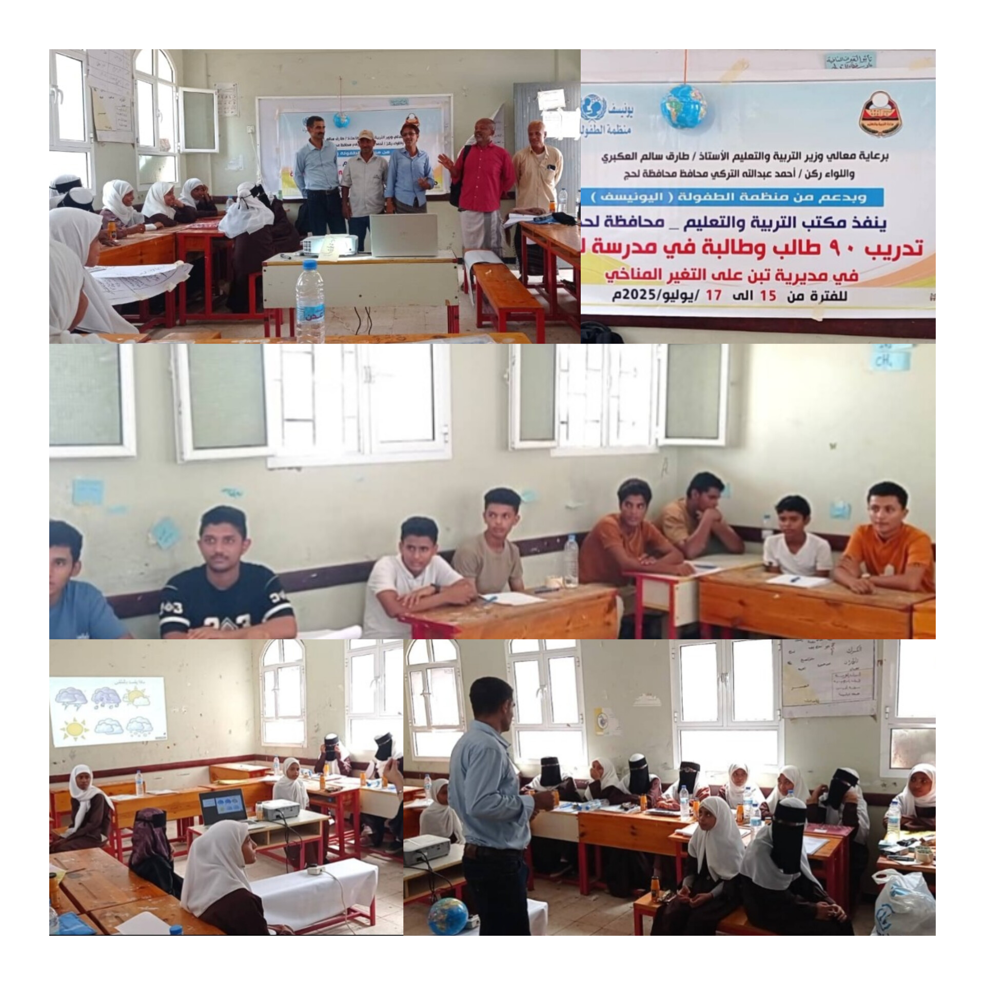 شهدت محافظة لحج صباح اليوم انطلاق الورشة التدريبية المناخية التي شارك فيها تسعون طالبا وطالبة من مدرسة لبوزة للتعليم الأساسي والثانوي، ضمن تدخلات منظمة اليونيسيف، وبرعاية وزير التربية والتعليم معالي الدكتور طارق سالم العكبري، ومحافظ محافظة لحج اللواء الركن أحمد عبدالله تركي، وتنظيم مكتب التربية والتعليم بالمحافظة ممثلا بشعبة التدريب والتأهيل. حيث تأتي هذه الورشة بهدف ترسيخ الوعي البيئي لدى الطلاب، وتمكينهم من فهم أعمق لظاهرة التغير المناخي وآثارها.