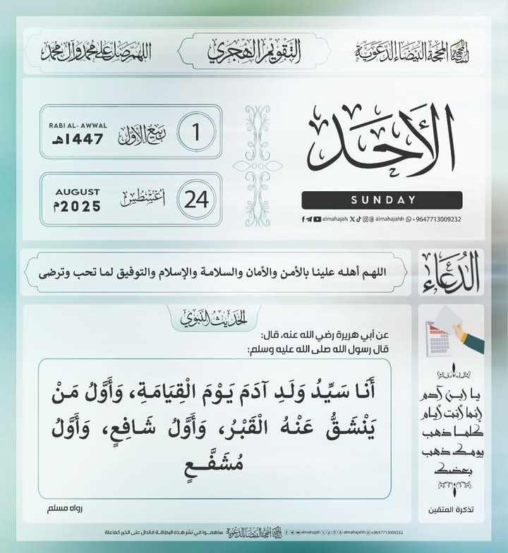 الأحد 01 #ربيع_الأول 1447ه.