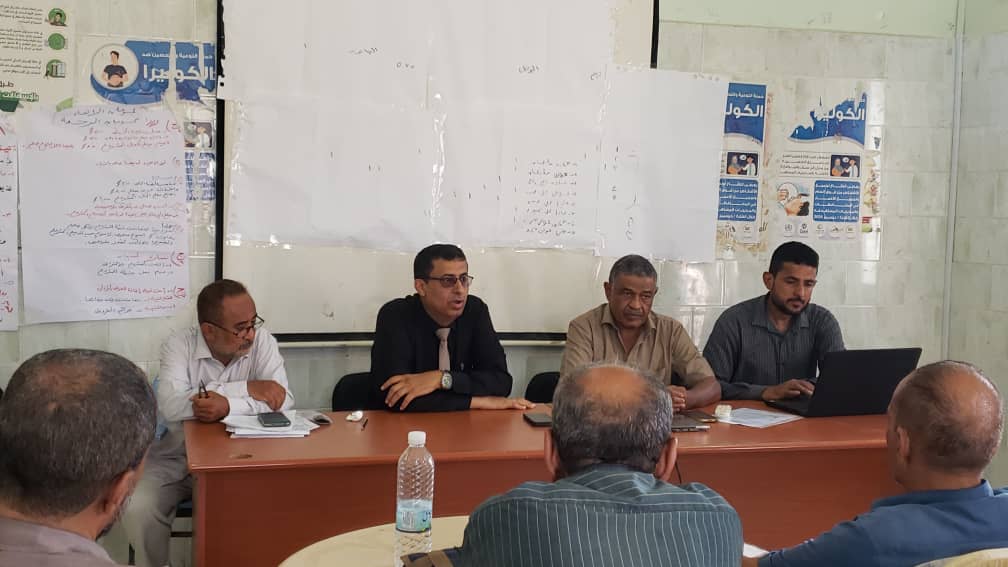 مدير عام مكتب الصحه العامه والسكان الدكتور د.خالد جابر ومدير الرعاية الصحيه الاوليه الدكتور د.اسامه دبا ونائب مدير التحصين شوقي محمد ومدير الترصد الوبائي الدكتور. شلال حاصل ومشرف مركزي من الوزارة الدكتورة. ميدا قاسم ومن برنامج التغذيه الدكتورة .سهير الشاطري ومن الصحه الانجابية الأستاذة صفيه الحكيم ومديرة إدارة التثقيف والاعلام الصحي بالمحافظة ابتسام المصلي