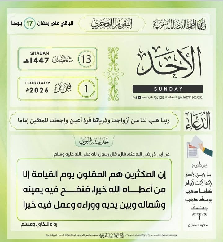 الأحد 13 #شعبان 1447ه.