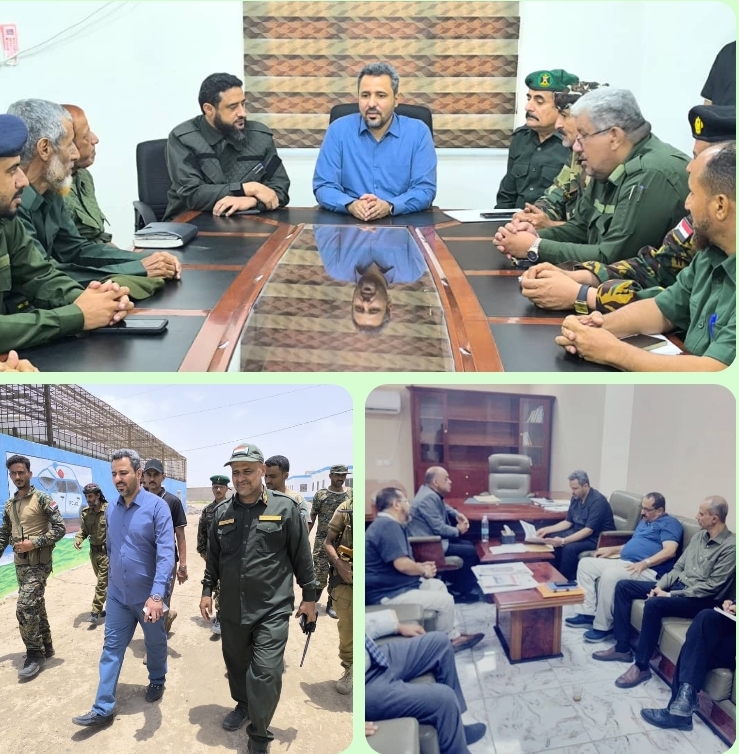الأمن والسجون كان لها لقاء مع محافظ المحافظة فقد قام بزيارة تفقدية لادارة امن المحافظة واللقاء بقيادت الوحدات العسكرية الامنية بقيادة مدير امن المحافظة العميد ناصر الشوحطي للوقوف على الصعوبات والتحديات التي تواجه القطاع الامني بالمحافظة اعقبها زيارة للسجن المركزي بصبر، مطلعاً على أوضاع النزلاء وموجهاً بتحسين الخدمات الإنسانية والتسريع في الإجراءات القانونية ..كمان كان للحالمي لقاء لقيادة الشرطة العسكرية بالمحافظة من اجل تنسيق العمل الامني والعسكري والادراي لتعزيز الاستقرار بالمحافظة …