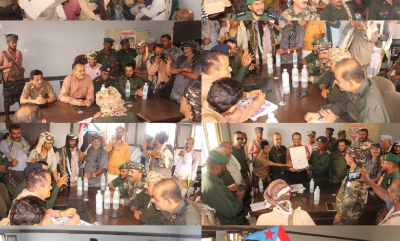 وتمت اجراءات الاستلام والتسليم باشراف اللجنة الامنية بالمحافظة وحضور الاخ يوسف مشرقي مدير مكتب الشيخ حمدي شكري والنقيب صالح محسن علي عماد ضابط أمن جبهة كرش والنقيب داؤود قايد صالح قائد كتيبة في احد ألوية الدعم والإسناد والملازم عارف فحرور ركن أمن ومعلومات اللواء الخامس بالفرقة الاولى بقوات درع الوطن وعدد من قادة كتائب قوات العمالقة، والمشايخ والوجاهات الاجتماعية واعضاء من المكتب التنفيذي والمجلس الانتقالي بالمديرية.