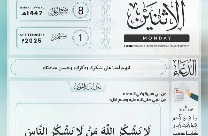 الإثنين 09 #ربيع_الأول 1447ه.
