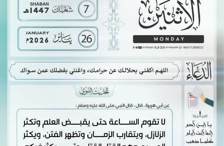 الموافق ل 26 #يناير #كانون_2 #جانفي 2026م.