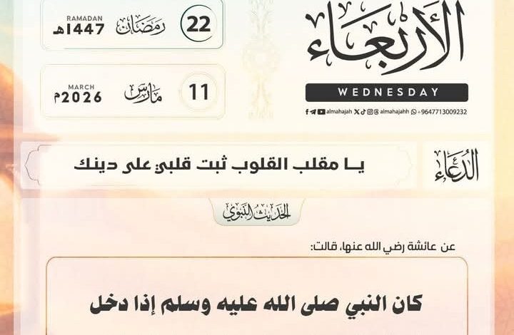 الأربعاء 22 #رمضان 1447 هـ .