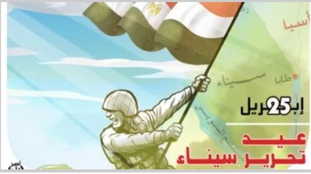 احتفى كاريكاتير «اليوم السابع» بالذكرى الـ44 لتحرير سيناء، حيث رسم الفنان أحمد خلف خريطة لمصر، مركزا على المنطقة الأعز والأغلى على قلوب المصريين، سيناء الحبيبة، وقد رفع جندى مصرى العلم المصرى، ما يعيد ذكرى النصر المجيدة.